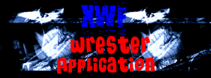 So you have decided to join the fatest growing wrestling fed on the net? Great choice. Please fill out the required feilds, you may fill out the unrequired ones if you wish. Please Note that you may be wrestling in House showes for like maybe 2-3 cards just so we can get a feel for your wrestler. Thanks and Have fun in the XWF.